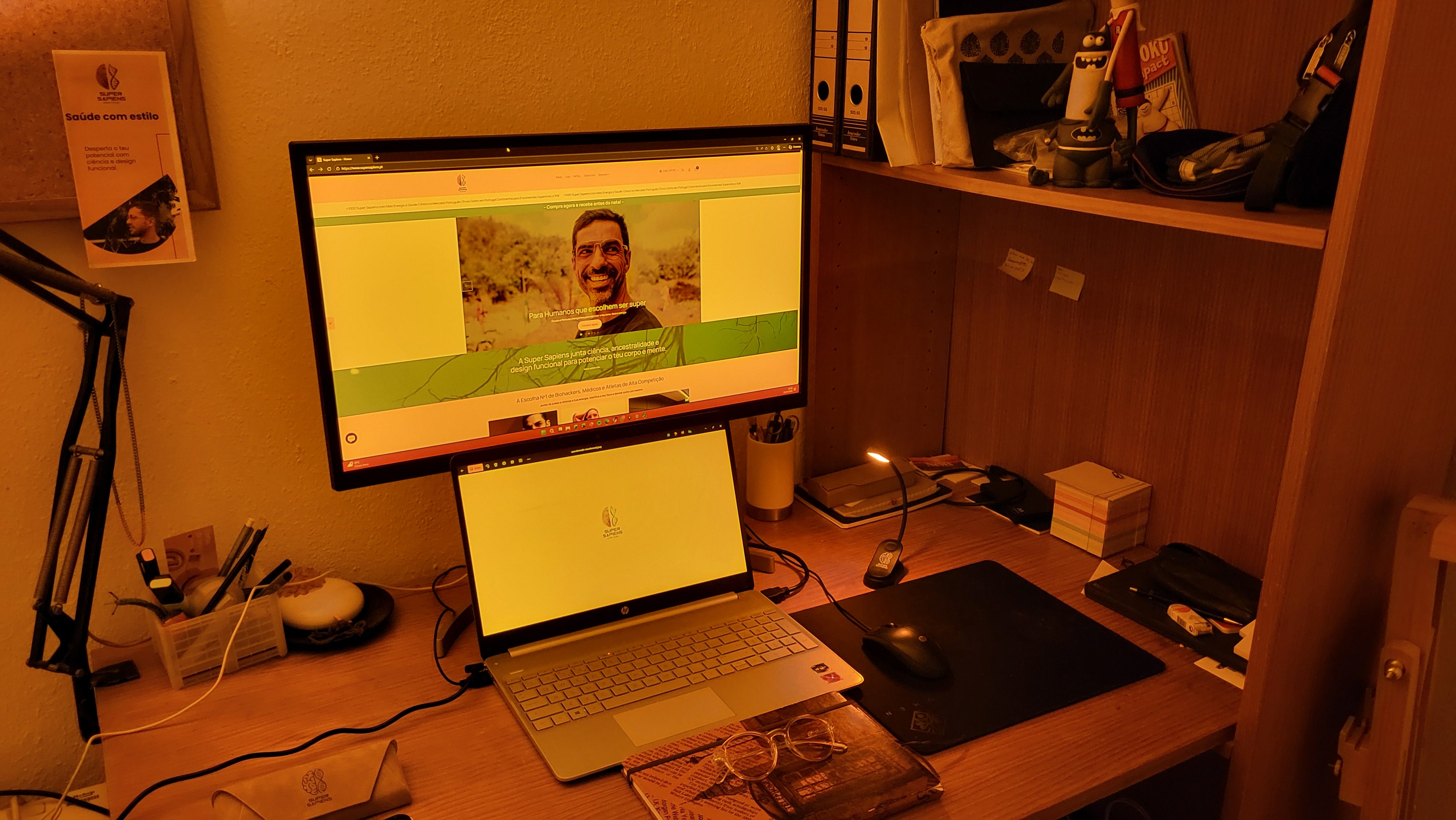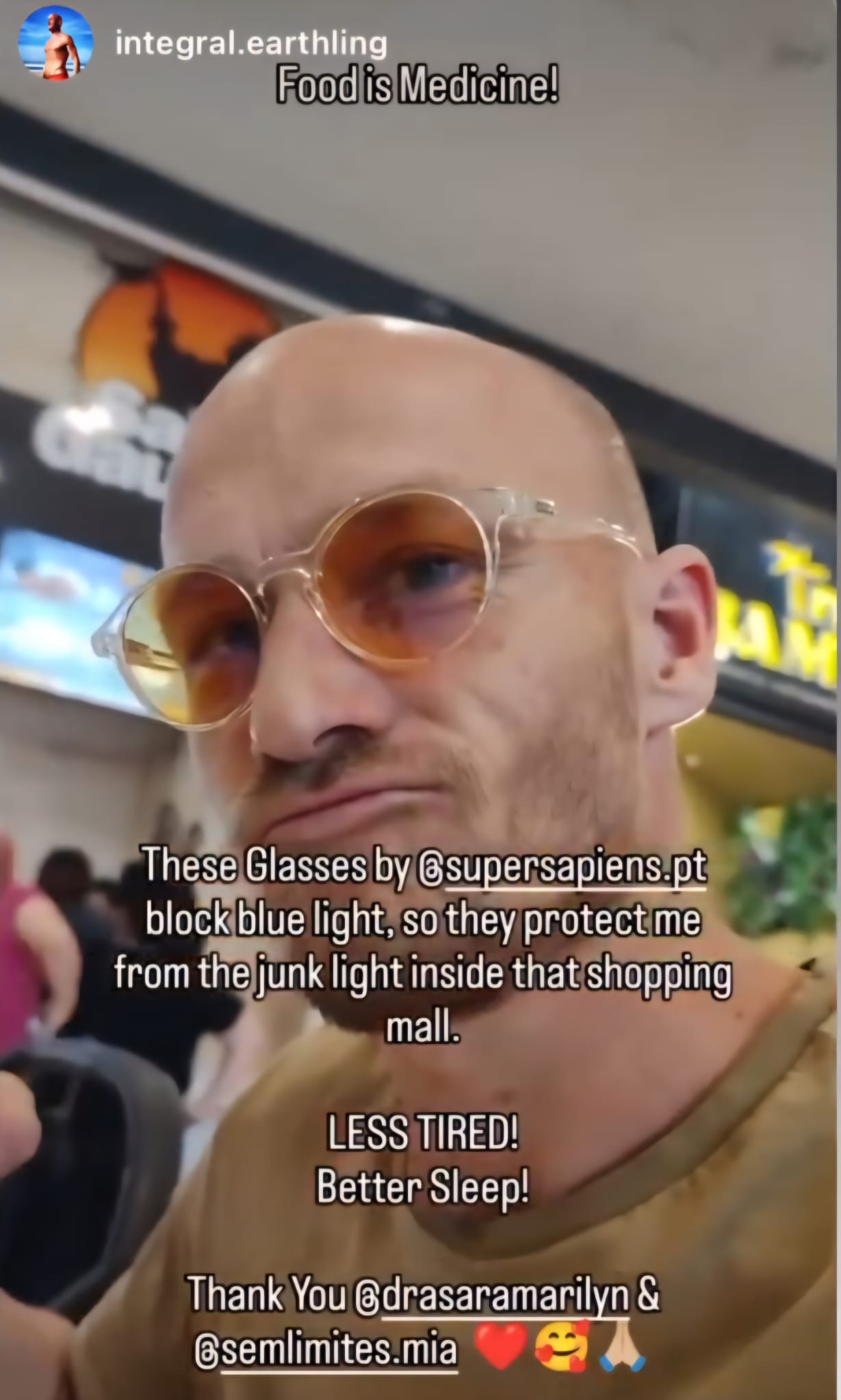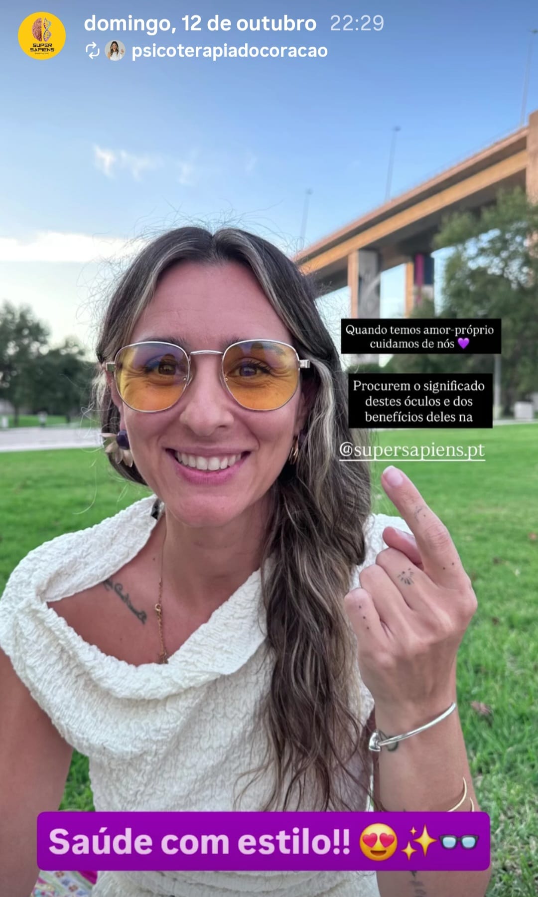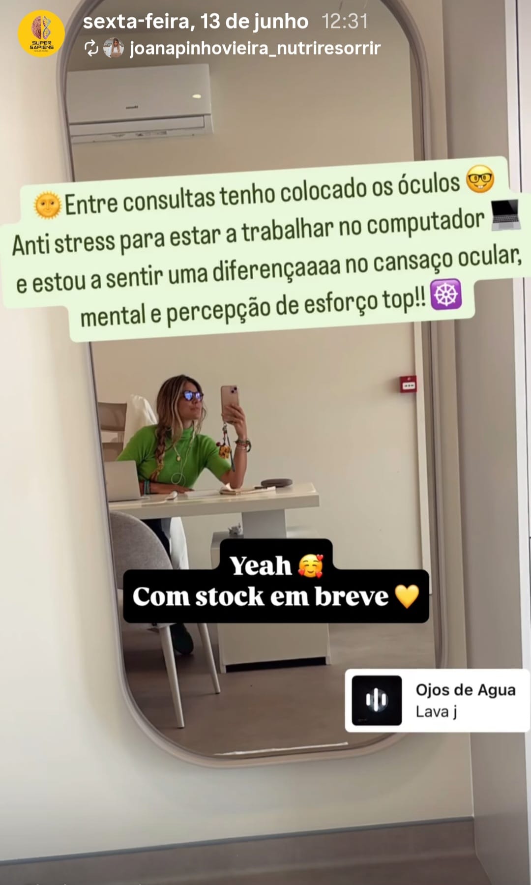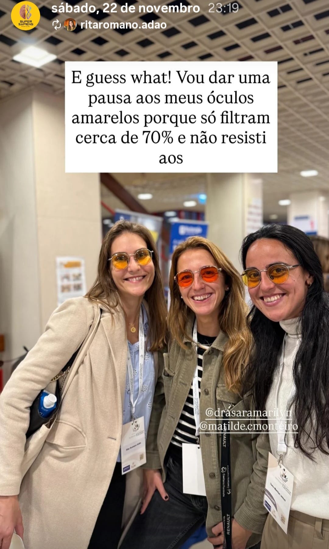 Depois: Proteção com ÓCULOS ANTI-STRESS de lente laranja (bloqueio de 98%), reduzindo a fadiga, suavizando a luz e acalmando a mente.